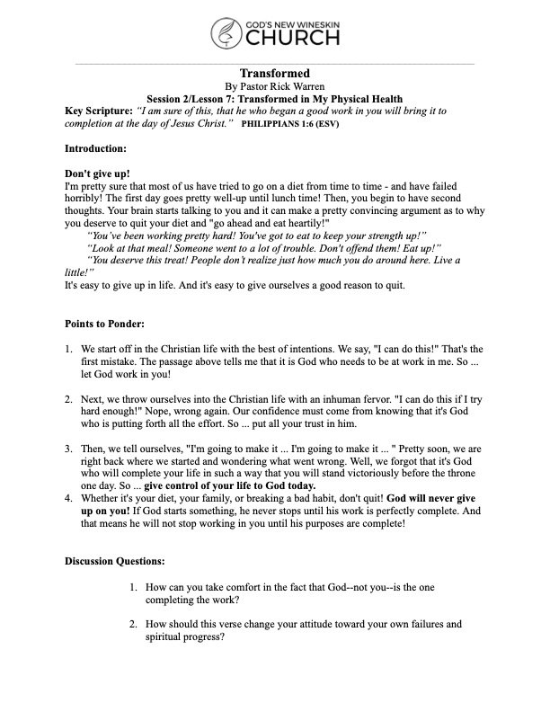 Key Scripture: "6 And I am sure of this, that he who began a good work in you will bring it to completion at the day of Jesus Christ." -Philippians 1:6 ESV