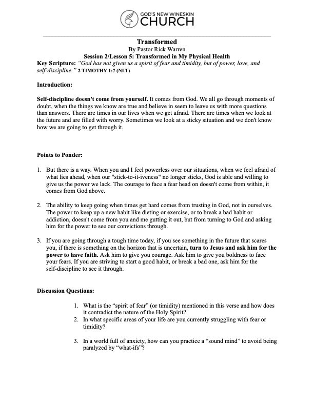 Key Scripture: "7 For God has not given us a spirit of fear and timidity, but of power, love, and self-discipline." -2 Timothy 1:7 NLT
