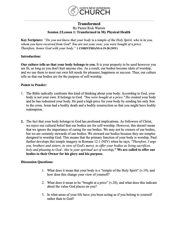 Key Scripture: "19 Do you not know that your bodies are temples of the Holy Spirit, who is in you, whom you have received from God? You are not your own; 20 you were bought at a price. Therefore honor God with your bodies." -1 CORINTHIANS 6:19-20 NIV