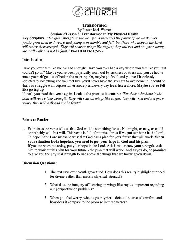 Key Scripture: "29 He gives strength to the weary and increases the power of the weak. 30 Even youths grow tired and weary, and young men stumble and fall; 31 but those who hope in the Lord will renew their strength. They will soar on wings like eagles; they will run and not grow weary, they will walk and not be faint." -Isaiah 40:29-31 NIV